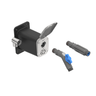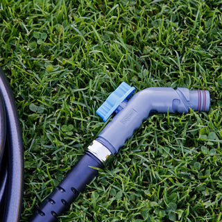 A side angled product shot of the Matte Black House Hydrant V1+ and the Wide Grip VB Hose Connector.